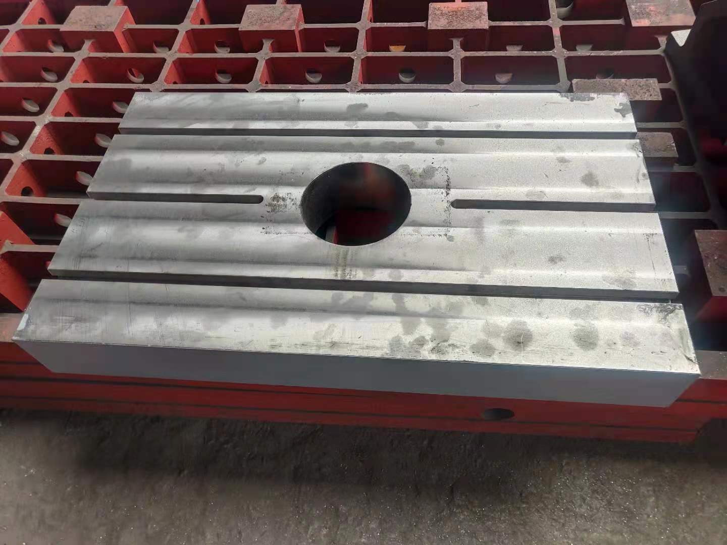 加工中心工作臺采用優(yōu)質(zhì)灰口鑄鐵HT250-300或QT500-600鑄造加工而成,工作面可開槽打孔,鑲套,表面磨削加工。適用于各種規(guī)格立式加工中心,臥式加工中心,龍門加工中心,鏜銑床加工中心等加工設備的輔助加工工裝。
