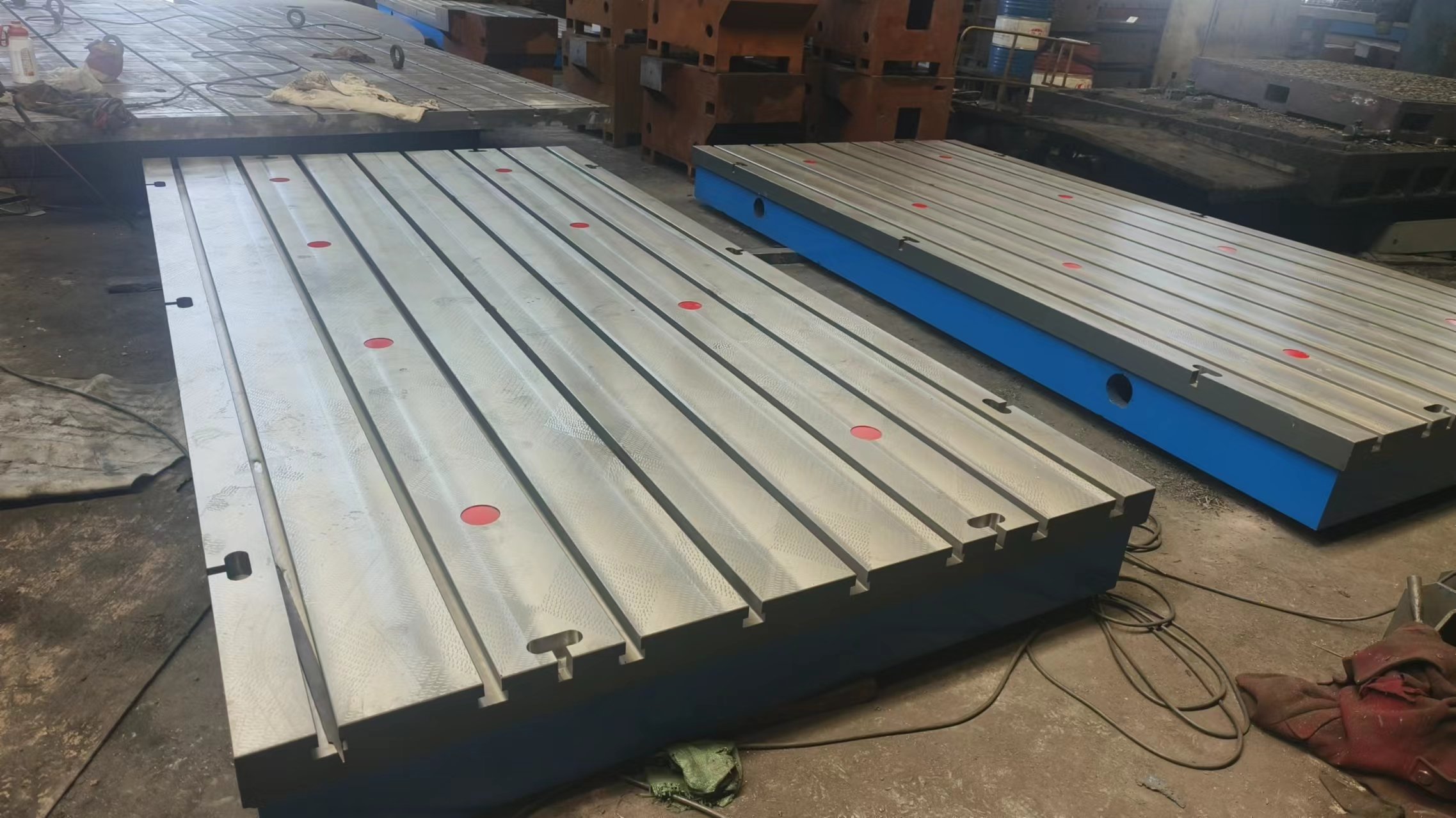 機(jī)床工作臺(tái),機(jī)床輔助工作臺(tái),龍門機(jī)床工作臺(tái),鏜銑床工作臺(tái)都屬于機(jī)床加工工作臺(tái),機(jī)床工作臺(tái)特性:上面有孔和T型槽,用來固定工件,和清理加工時(shí)產(chǎn)生的鐵屑。